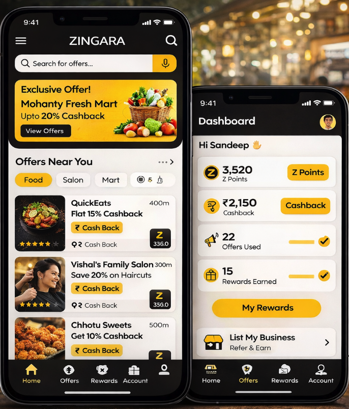 Zingara brings instant savings from your favorite nearby spots. Whether it's coffee, a salon visit, or dining out — Zingara makes every visit smarter and more rewarding.